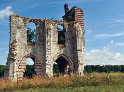 Le circuit emprunte d’abord le centre du village devenu commune à la Révolution. L’église, située au carrefour, a donc été édifiée au 19ème siècle et récemment restaurée. De l’autre côté de la route se trouve le site de l’ancienne abbaye cistercienne de Clairmarais installée aux pieds du marais à partir du 12ème siècle et détruite à la Révolution. Seule la porterie et le remarquable corps de ferme avec pigeonnier ont été préservés.